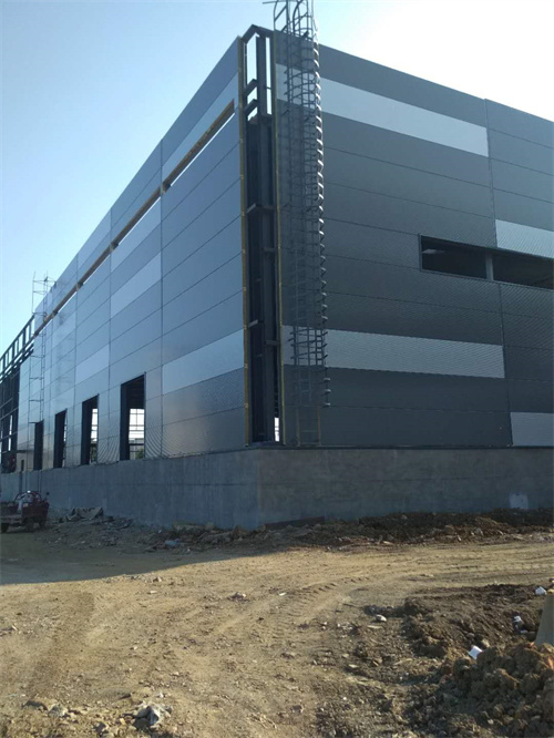 工程概況:144m*84m*10m,墻面采用V1000型新型板材施工,外墻無明釘外露,保溫效果及防雨水性能更好。